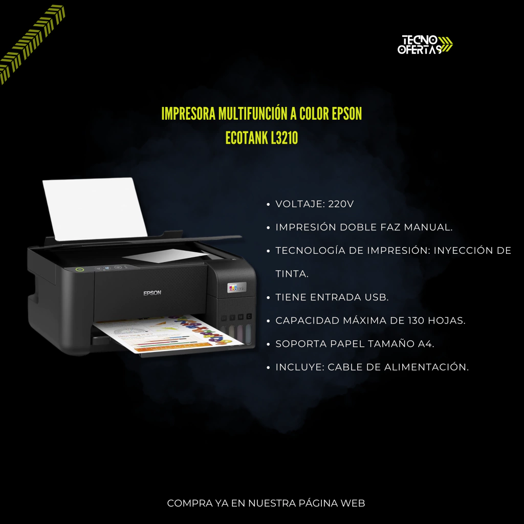 ✔️ Impresora Epson EcoTank L3210 (color negro).