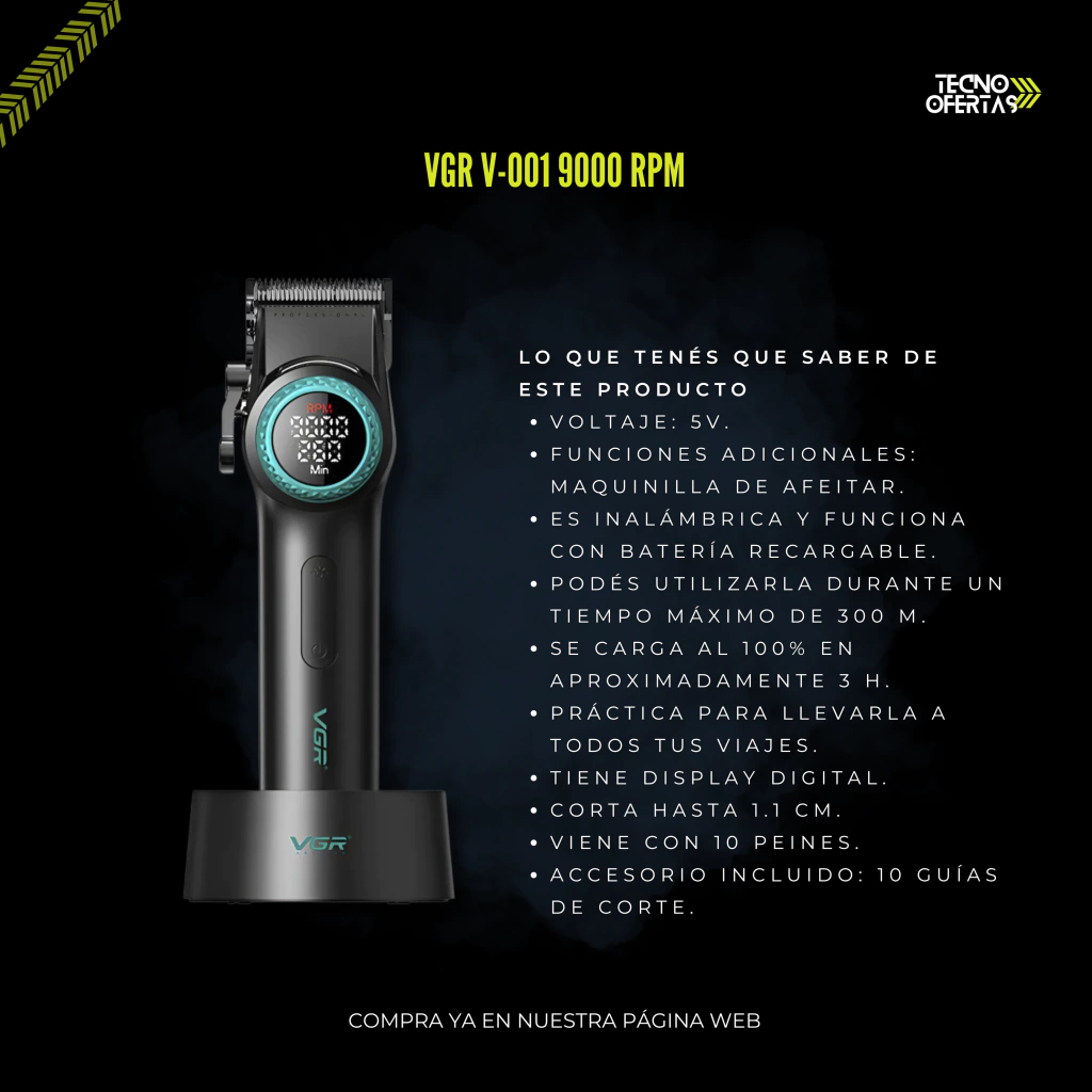Máquina Barbería Profesional Corta Pelo VGR V-001 9000 RPM
