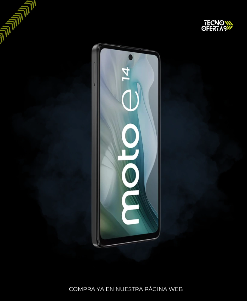 El Motorola Moto E14 es un smartphone diseñado para ofrecer una experiencia audiovisual excepcional, con un rendimiento fluido y un diseño resistente y elegante.