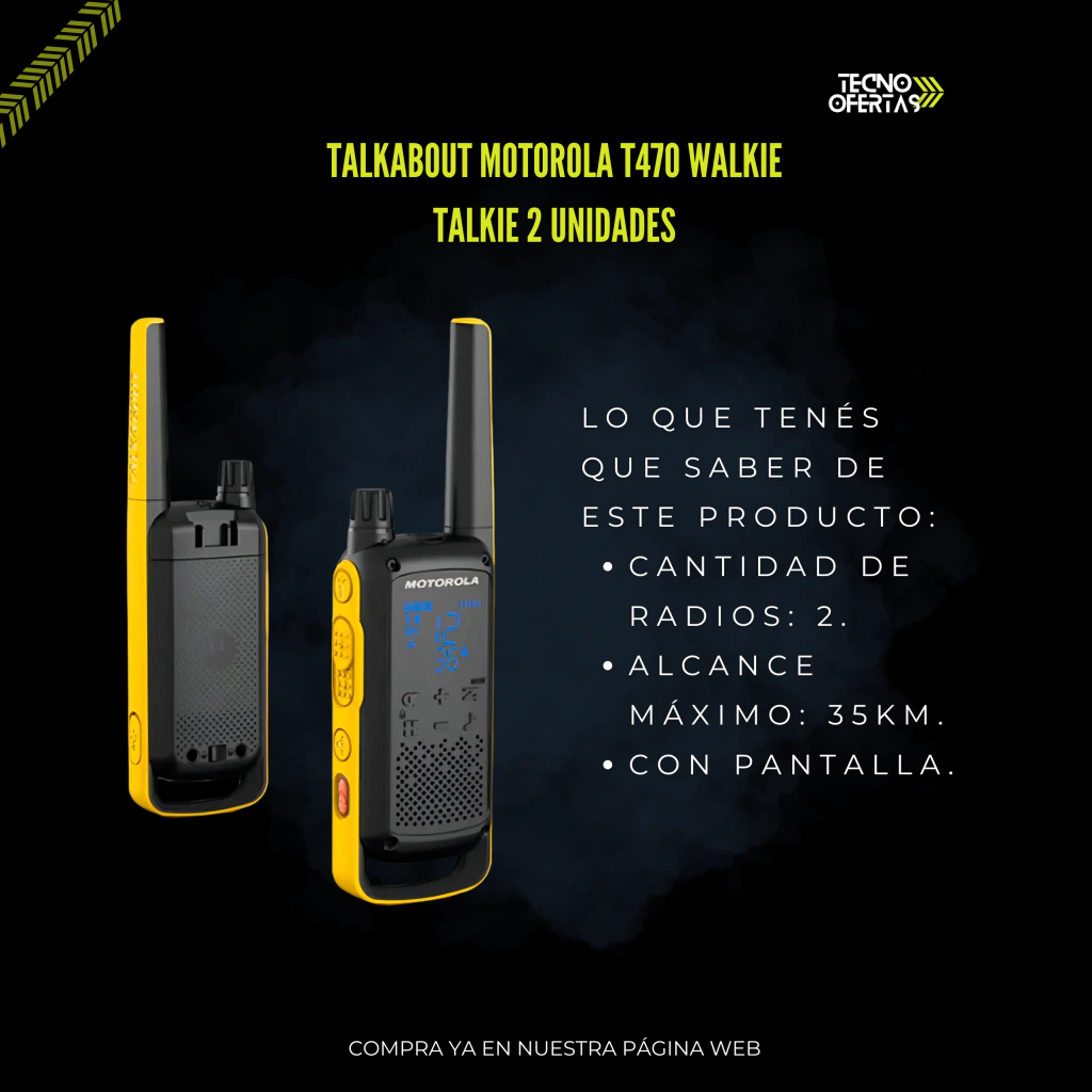 El Motorola Talkabout T470 es el compañero ideal para tus aventuras, trabajo en exteriores o situaciones donde la comunicación rápida y confiable es clave. Con alcance de hasta 35 km, resistencia a la intemperie (IPX4) y linterna LED integrada, este equipo está diseñado para mantenerte siempre comunicado, sin importar las condiciones.